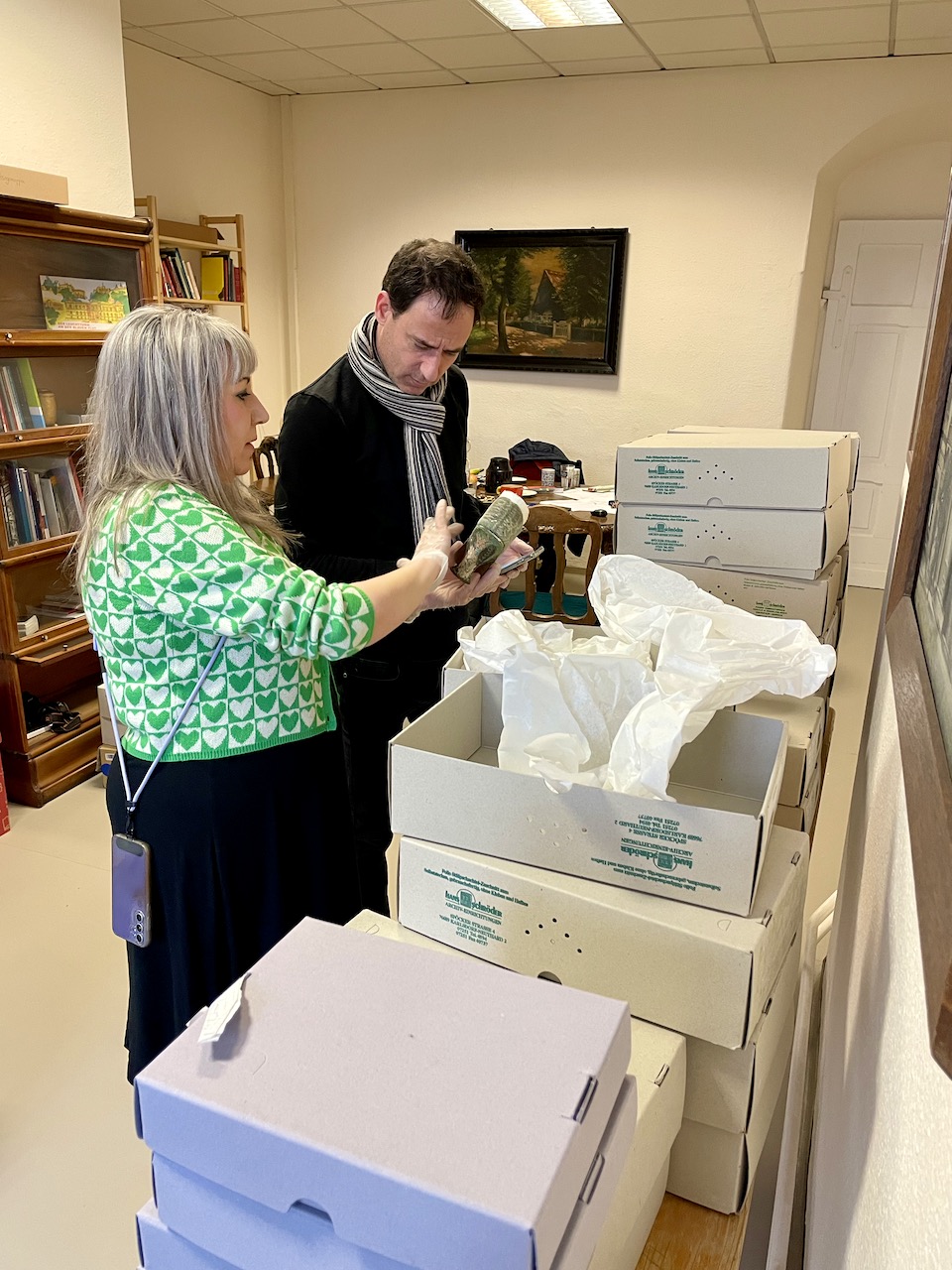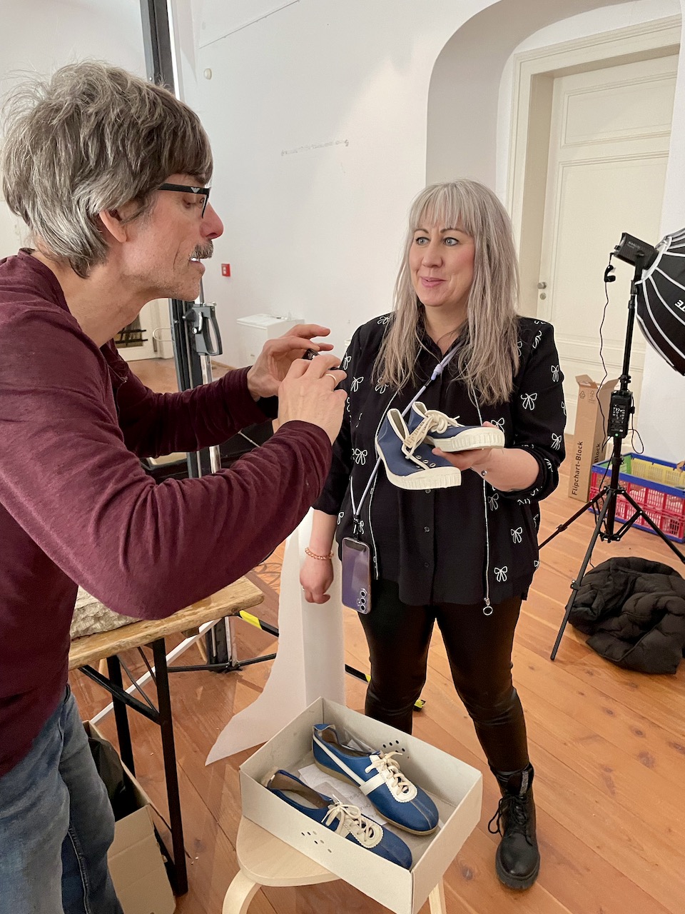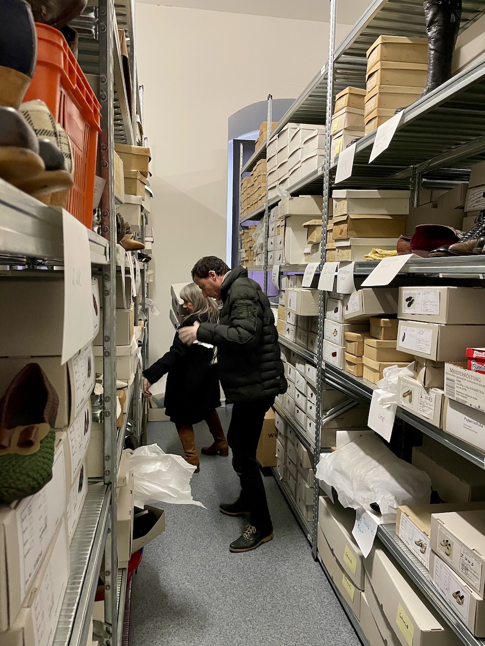 Die ersten Ideen für ein ganz besonderes Ausstellungsprojekt sprudelten, als Liza Snook (https://virtualshoemuseum.com) und Kobi Levi im September 2024 unsere Depots besichtigen durften.