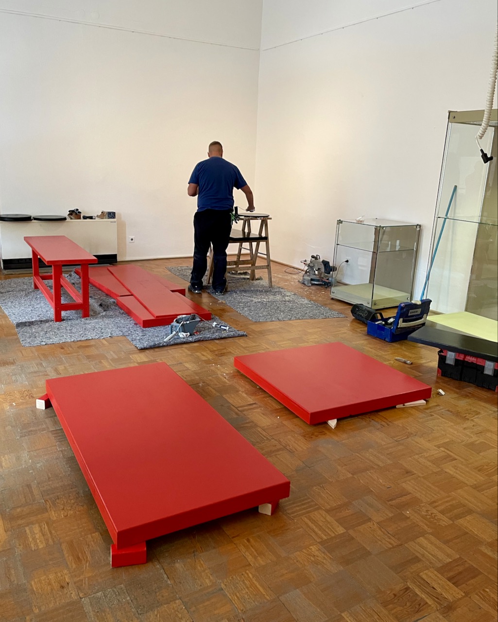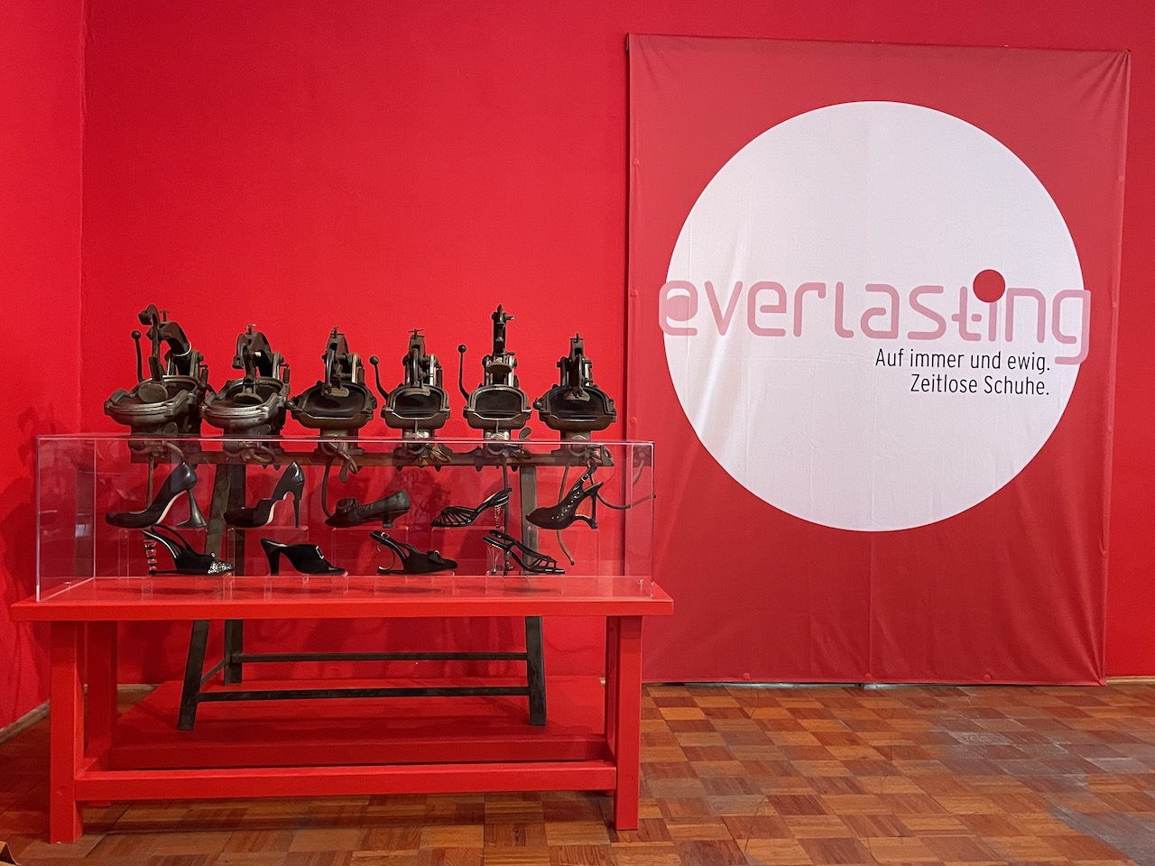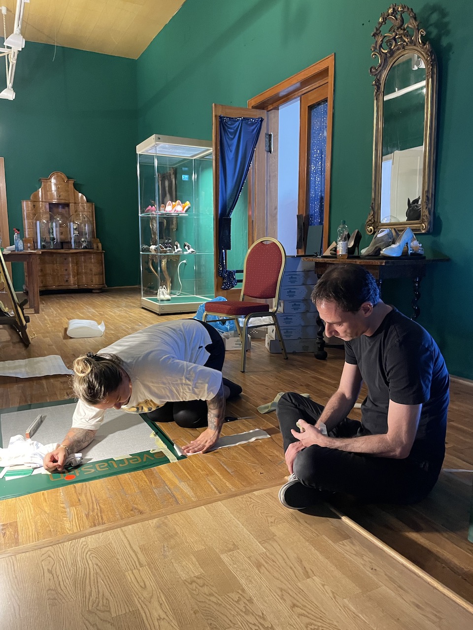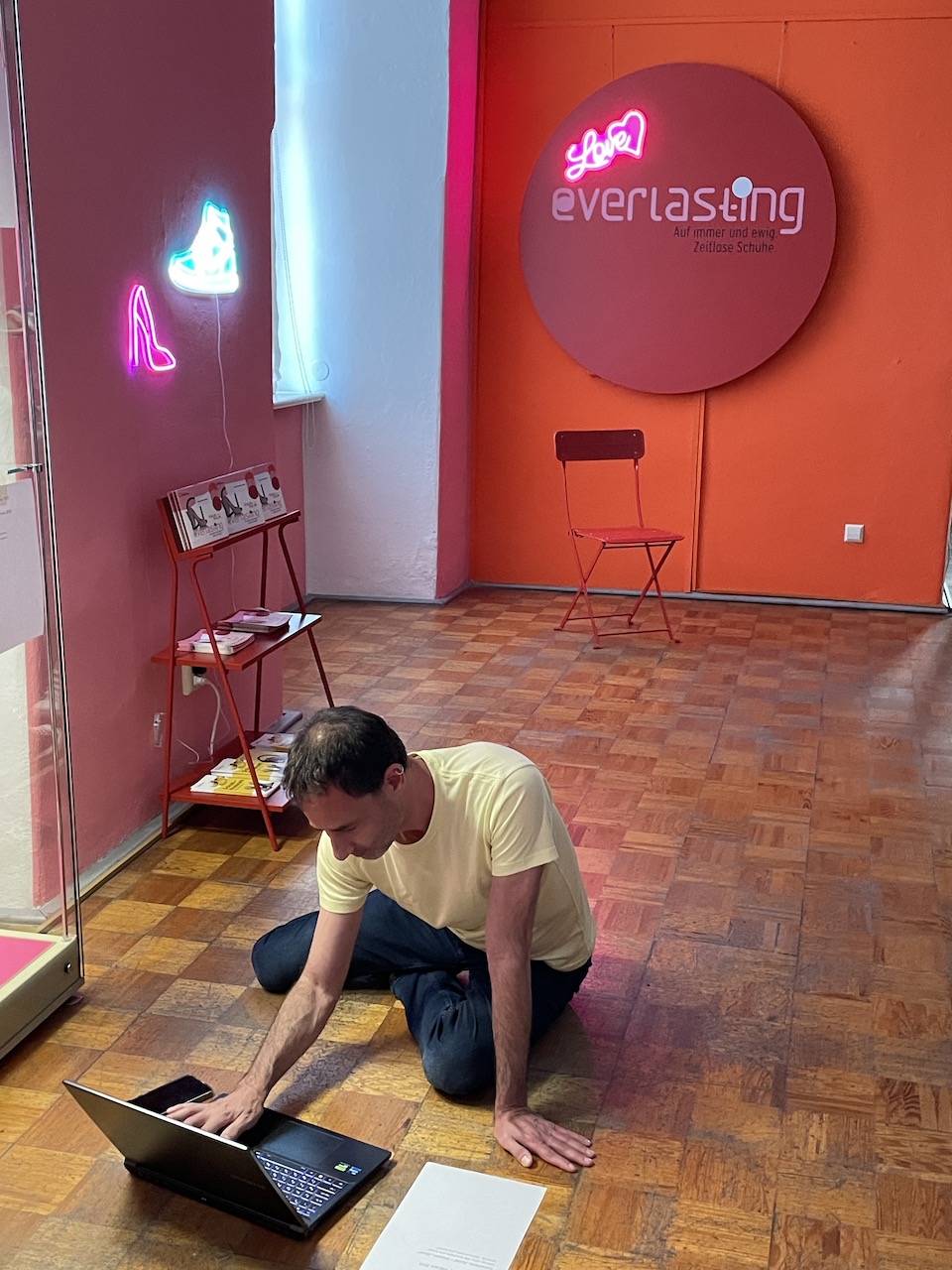 Schuhe auswählen; Gruppierungen Kobi-Levi-Design/Weißenfelser Sammlung bilden; Vitrinentypen und -größen sowie Standorte festlegen, weitere Objekte (Schuhmaschinen, Möbel etc. auswählen); Objekte fotografieren; Farbgestaltung der Ausstellungsräume, Grafikdesign im Haus und in der Ausstellung sowie Werbemittel und -kampagne besprechen und viele kleine Dinge am Rand, die auch wichtig sind…