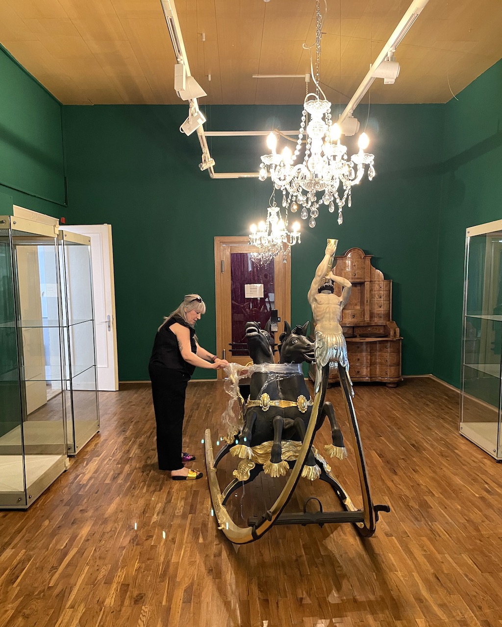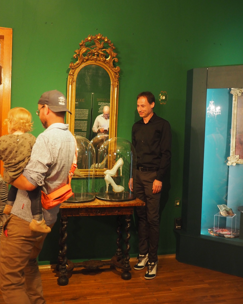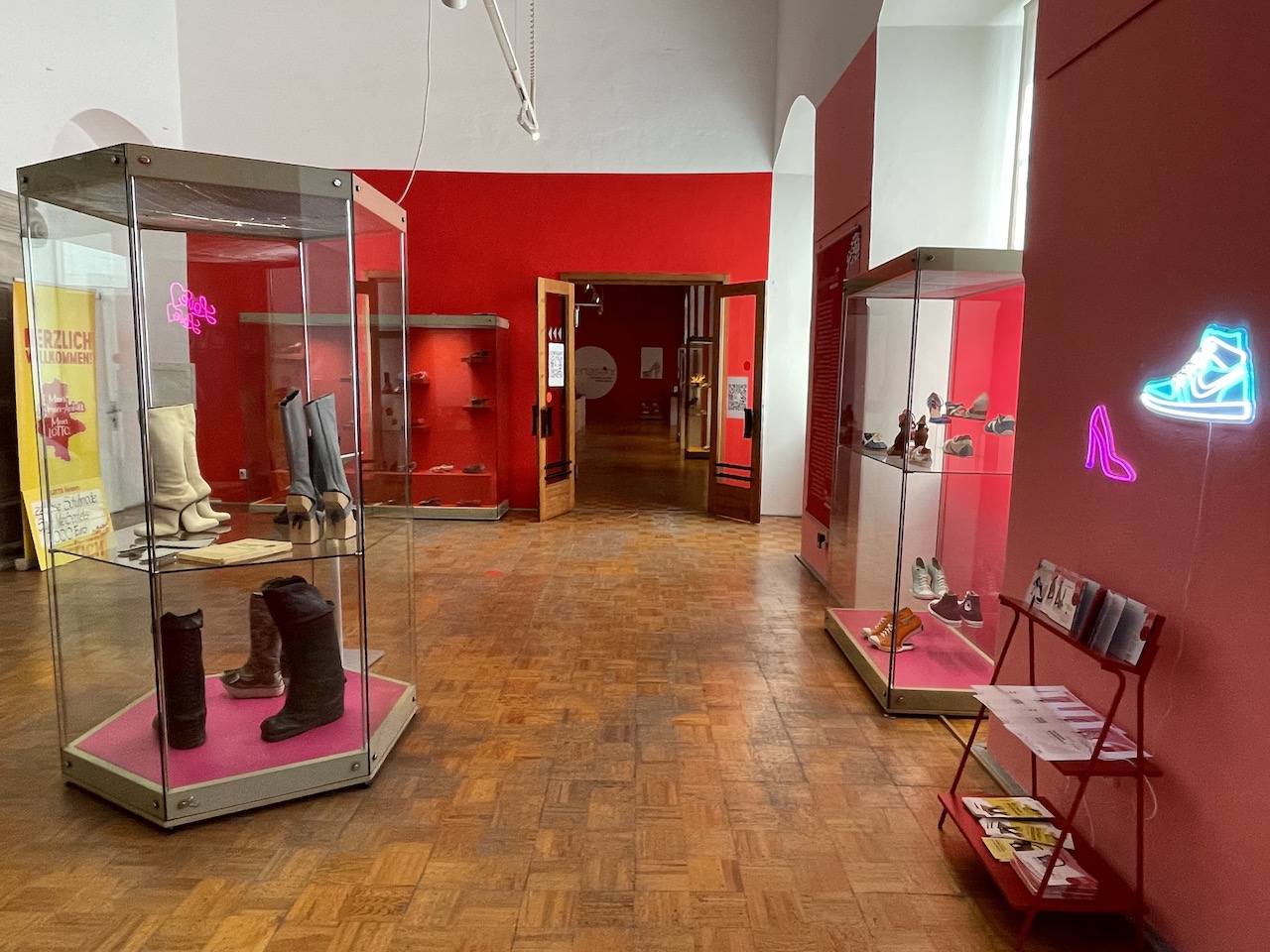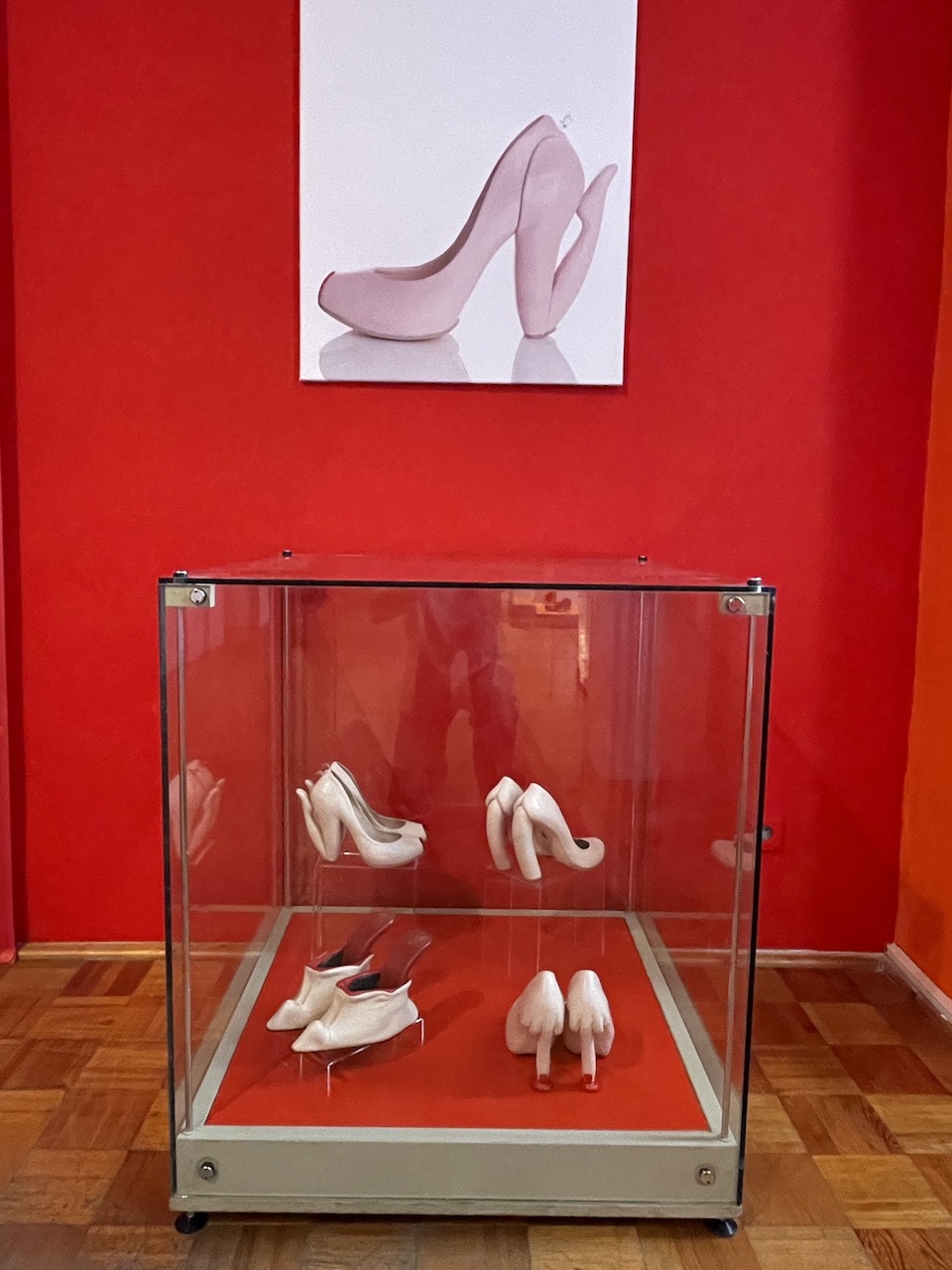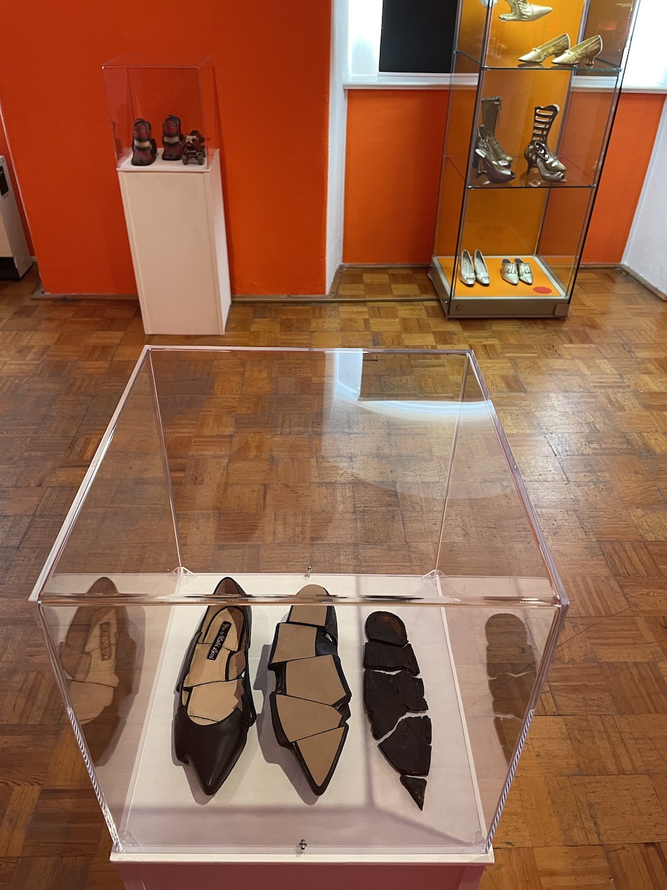 Es fanden sich Parallelen zwischen Kobis Entwürfen und Objekten aus unserer Sammlung, wo Jahrhunderte dazwischen liegen, z. B. die roten Absätze oder die zerbrochene Sohle… Das war die Initialzündung für einen Mix aus beiden Sammlungen in einer Ausstellung.