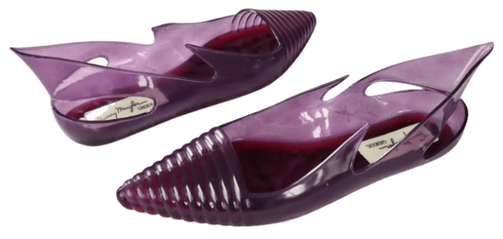 Das veranlasste uns sofort nach Kreationen von ihm zu recherchieren und erwarben ein Paar fliederfarbene „Apollo Jelly“-Sandalen.
