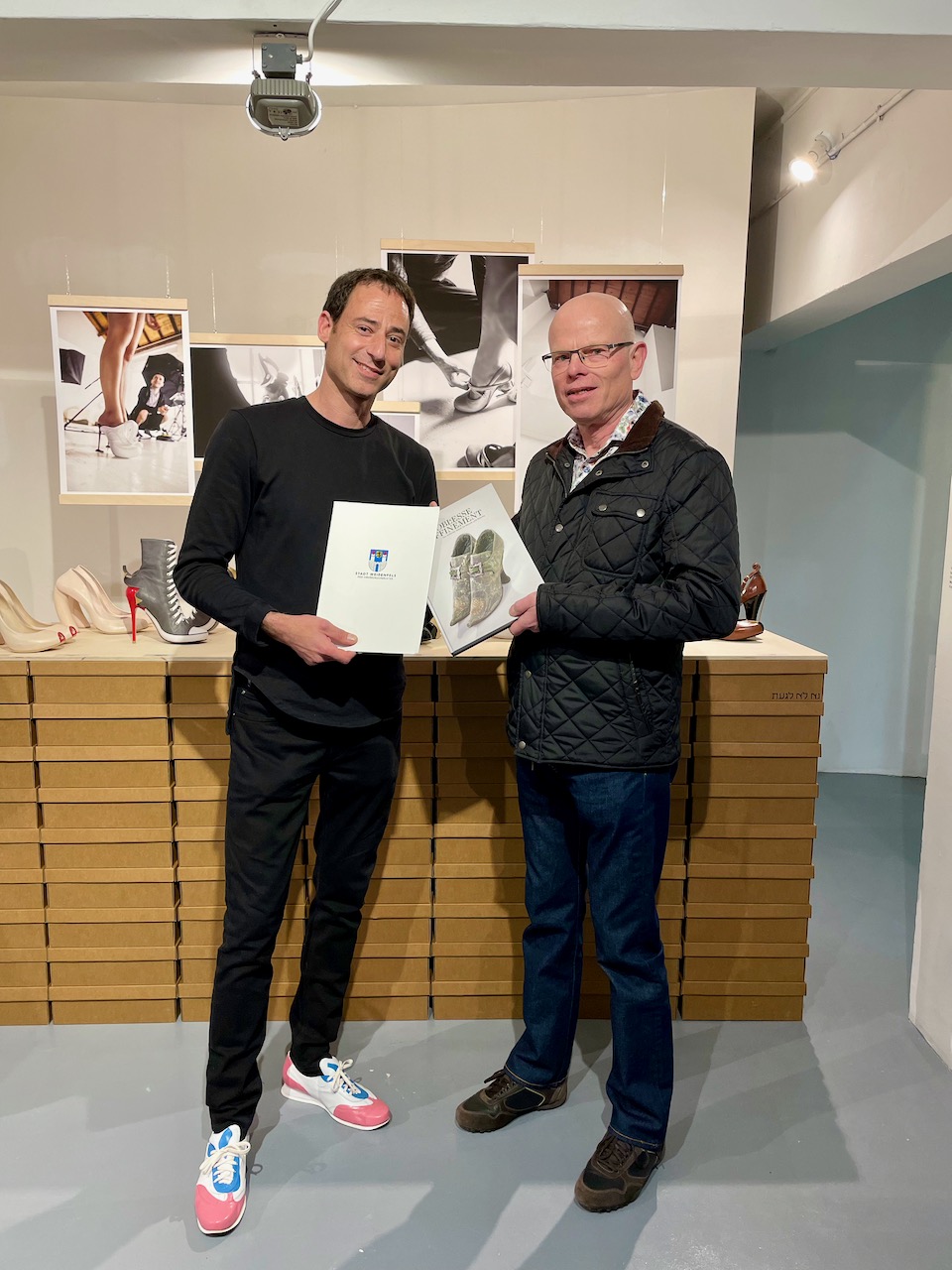 Er gratulierte Kobi Levi zu seinem 25-jährigen Schaffen als Schuhdesigner und überbrachte Grüße vom Museum und das Buch „Noblesse & Raffinement“ als kleines Geschenk sowie Grüße vom Museumsverein.