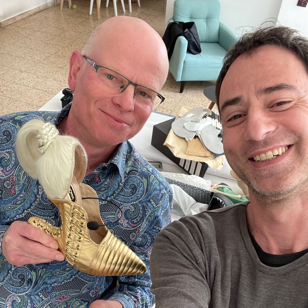 Kobi Levi freute sich, dass wir großes Interesse an seinen Arbeiten haben und bot uns eine ganze Liste von Modellschuhen zu vergünstigten Preisen an.