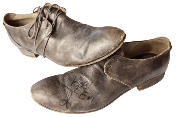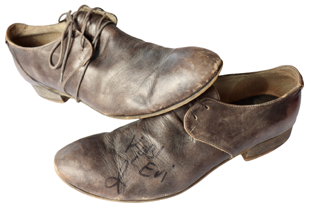 Es handelt sich um ein Paar Halbschuhe, die Kobi Levi 2004 für sich selbst hergestellt und viel getragen hat.