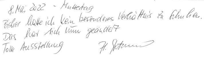 „Sie glauben gar nicht, wie gut uns die heutige Veranstaltung getan hat! Wir sind von der Ausstellung/Präsentation total begeistert… “ K. F.-H.