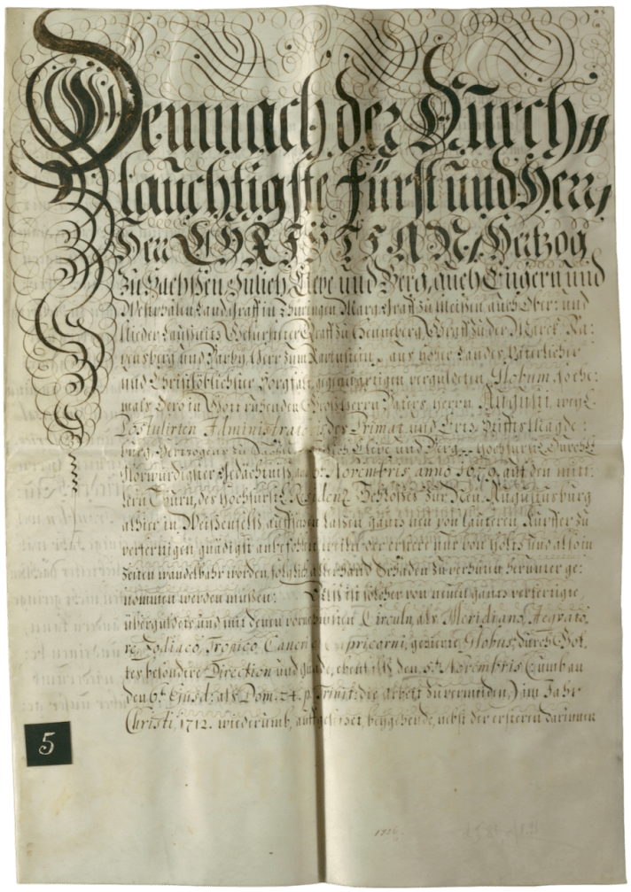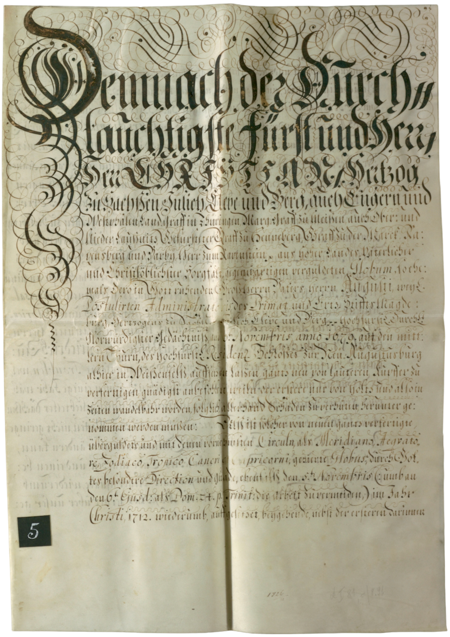 Denkschrift zur Aufsetzung einer neuen vergoldeten Kugel auf dem mittleren Schlossturm, 1712