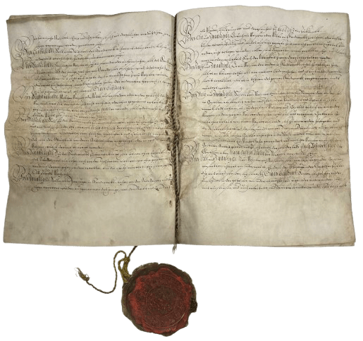 Für die Urkunde wurde eine spezielle Klappmappe aus säurefreier Pappe zur sicheren Lagerung angefertigt.